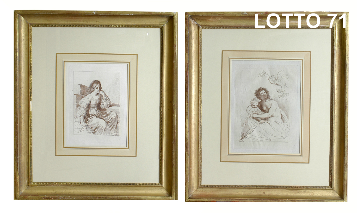 FRANCESCO BARTOLOZZI (1728 – 1815) LOTTO COMPOSTO DA 02 INCISIONI RAFF. FIGURE FEMMINILI MIS. 20 X 30