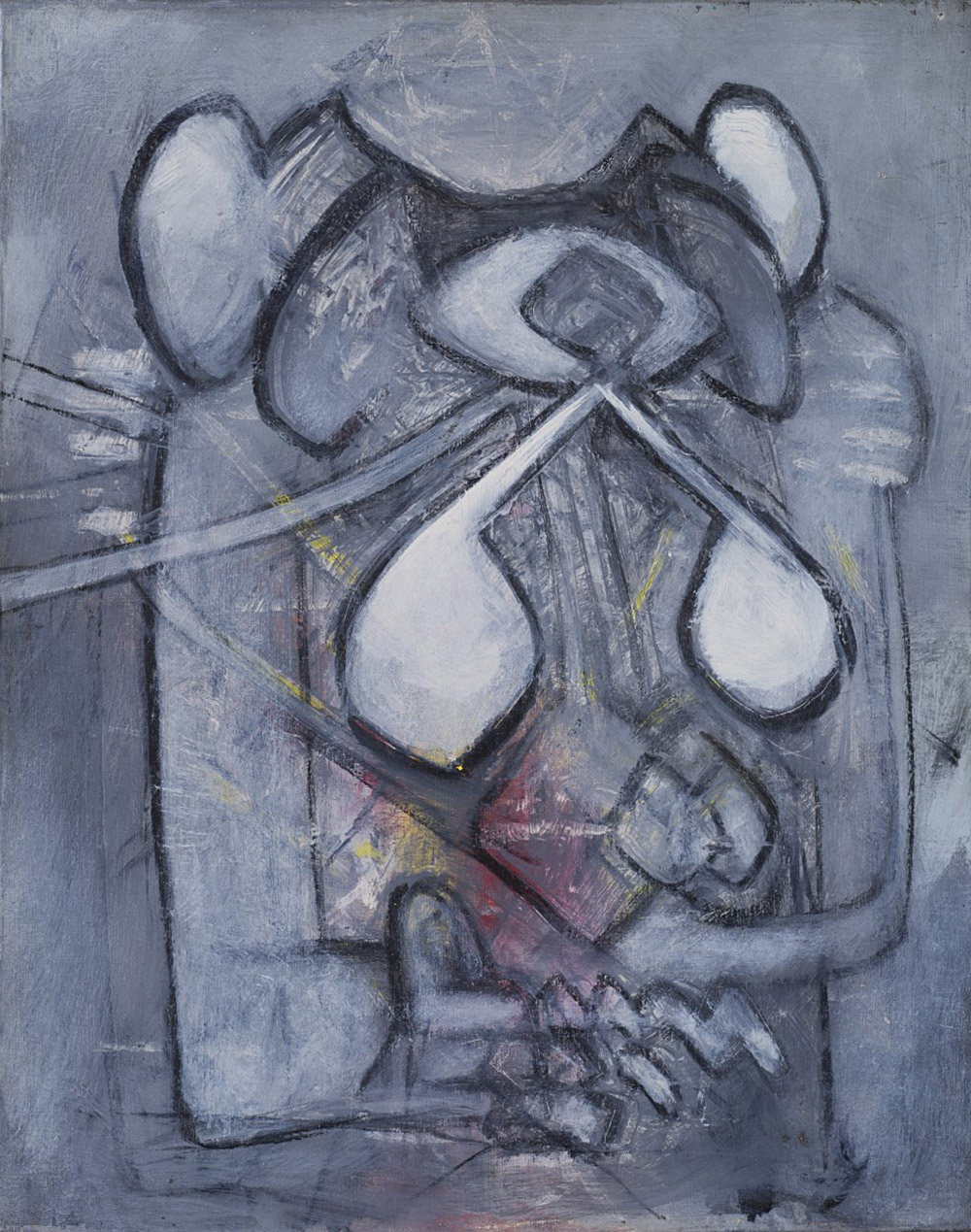 Roberto Matta (Santiago del Cile 1911 - Civitavecchia 2002) "Senza titolo" 1956 olio su tela, cm 50x40 Provenienza Galleria d'Arte del Naviglio, Milano Galleria d'Arte del Cavallino, Venezia Collezione privata, Milano Opera accompagnata da certificato di autenticità su fotografia rilasciato da Ramuntcho Matta con il n. CAN056F1010 Roberto Matta (Santiago del Cile 1911 - Civitavecchia 2002) "Untitled" 1956 oil on canvas, cm 50x40 Provenance Galleria d'Arte del Naviglio, Milan Galleria d'Arte del Cavallino, Venice Private collection, Milan Certificate of authenticity on photography by Ramuntcho Matta with nr. CAN056F1010
