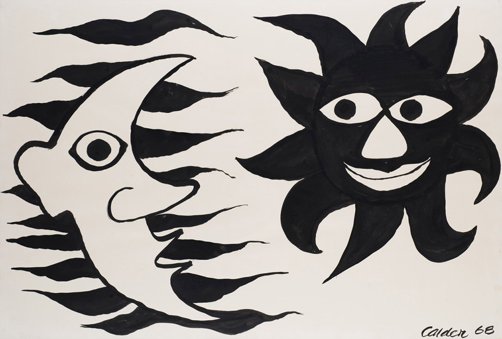 Alexander Calder (Lawton 1898 - New York 1976) "Fringed Sun and Moon" 1968 gouache su carta, cm 74x109 Firmata e datata 68 in basso a destra Provenienza Perls Gallery, New York (1968) Collezione privata, Philadelphia Janet Fleisher Gallery, Philadelphia (1976) Ivi acquisito: Collezione Ambasciatore Onofrio Solari Bozzi, Roma Alexander Calder (Lawton 1898 - New York 1976) "Fringed Sun and Moon" 1968 gouache on paper, cm 74x109 Signed and dated 68 lower right Provenance Perls Gallery, New York (1968) Private collection, Philadelphia Janet Fleisher Gallery, Philadelphia (1976) Ambassador Onofrio Solari Bozzi collection, Rome