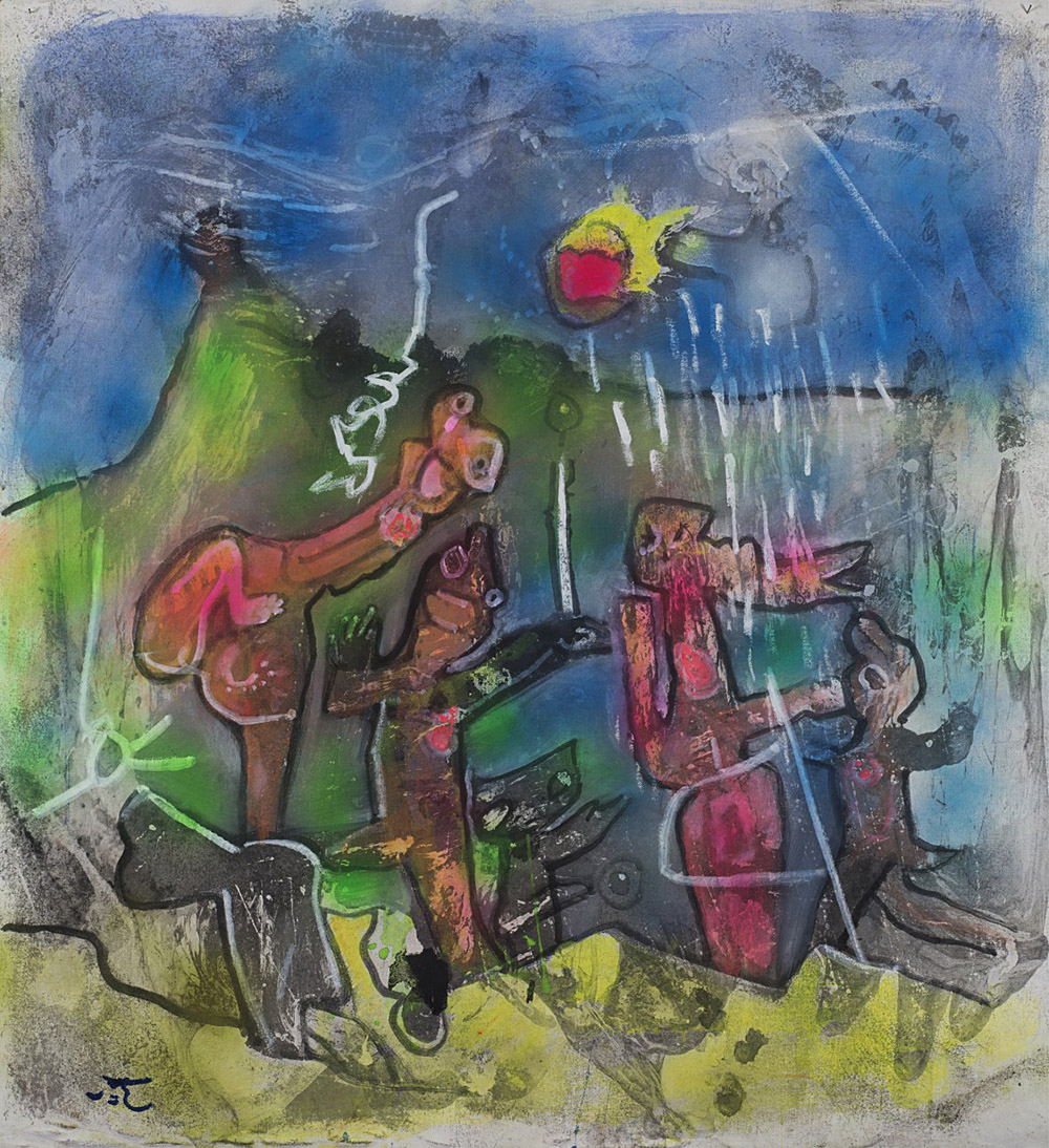 Roberto Matta (Santiago del Cile 1911 - Civitavecchia 2002) "Tonnère d'eté" 1989 olio su tela, cm 104x96 Firmato in basso a sinistra Provenienza Opera acquisita direttamente dall'artista dall'attuale proprietario Opera accompagnata da certificato di autenticità su fotografia rilasciato da Germana Ferrari Matta, con il n. 89/78 Roberto Matta (Santiago del Cile 1911 - Civitavecchia 2002) "TTonnère d'eté" 1989 oil on canvas, cm 104x96 Signed lower left Provenance Acquired from the artist by the present owner Certificate of authenticity on photography by Germana Ferrari Matta, n. 89/78