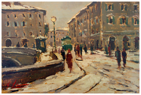 GIOVANNI LOMI Ardenza 1889 – Ardenza 1969 Senza titolo Olio su faesite 20 x 30. Firma in b. a s. e sul verso. B.A.: 800