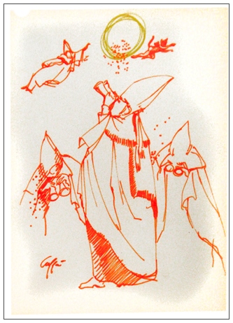 NINO CAFFE’ Alfedena 1909 – Pesaro 1975 Scrutando il cielo 1957 Inchiostro su carta 30 x 21,5. Firma in b. a s.; sul verso timbro (parzialmente leggibile) di una galleria di Milano + sul cartone di chiusura timbro e num. archivio con firma Giorgio Borghi. Autentica e arch. Giorgio Borghi, Ravenna su foto. Pubbl.: “Caffè - Catalogo Generale delle Opere“, vol.3, Viola Edizioni d’Arte, Galliate, p.77. B.A.: 180