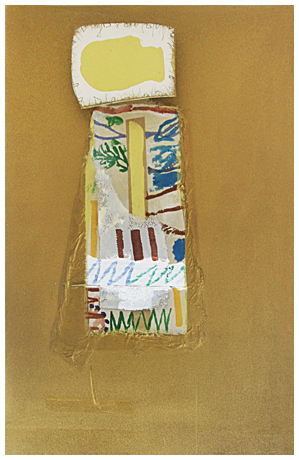MIMMO PALADINO Paduli 1948 Laboratory 2000 Olio, t.m., collage e applicazioni su tela 70 x 45. Firma, data e titolo sul verso + etichetta descrittiva Galerie Thaddaeus Ropac, Parigi. Autentica dell’autore su foto. Opera contenuta in teca. B.A.: A RICHIESTA