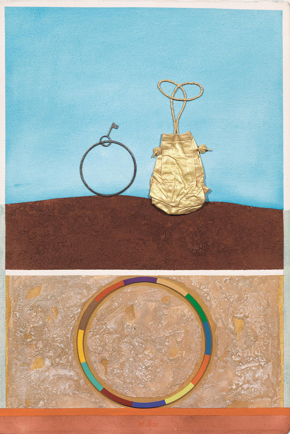 tempera e assemblage polimaterico su cartone, cm 57x38