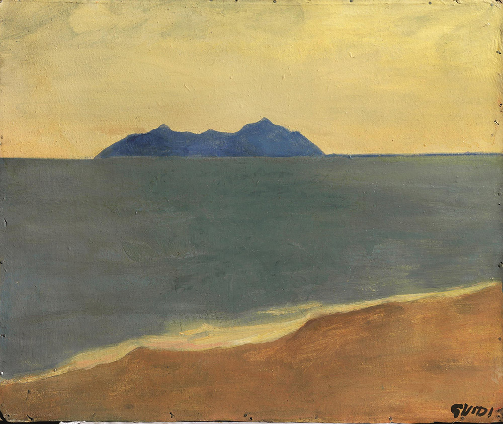 VIRGILIO GUIDI(Roma 1891 - Venezia 1984)Isolaolio su cartone pressato, cm...