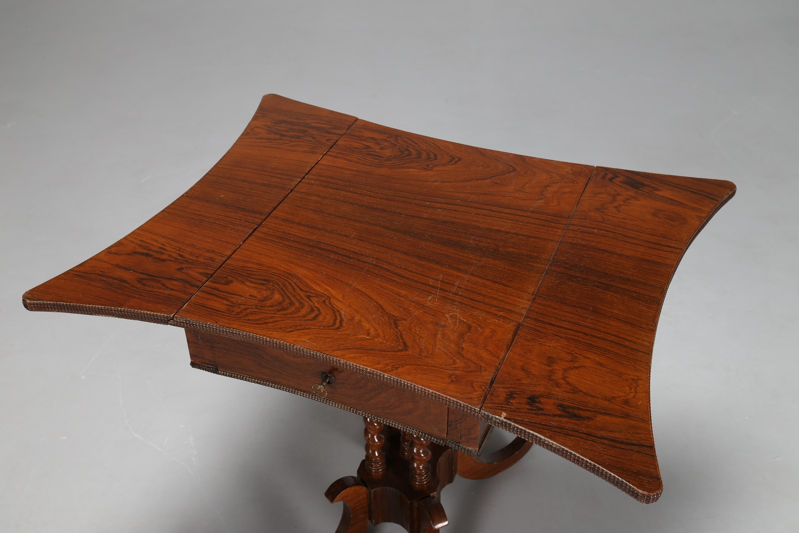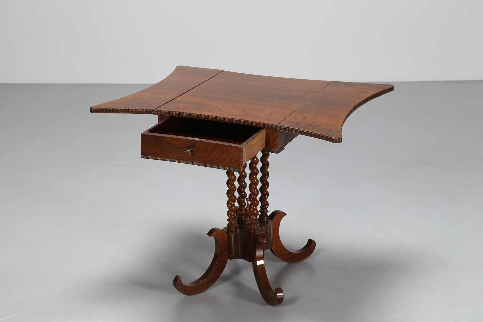 MANIFATTURA DEL XIX SECOLO Tavolino apribile con gambe a rocchetto,...
