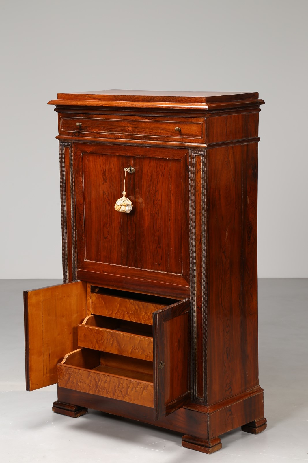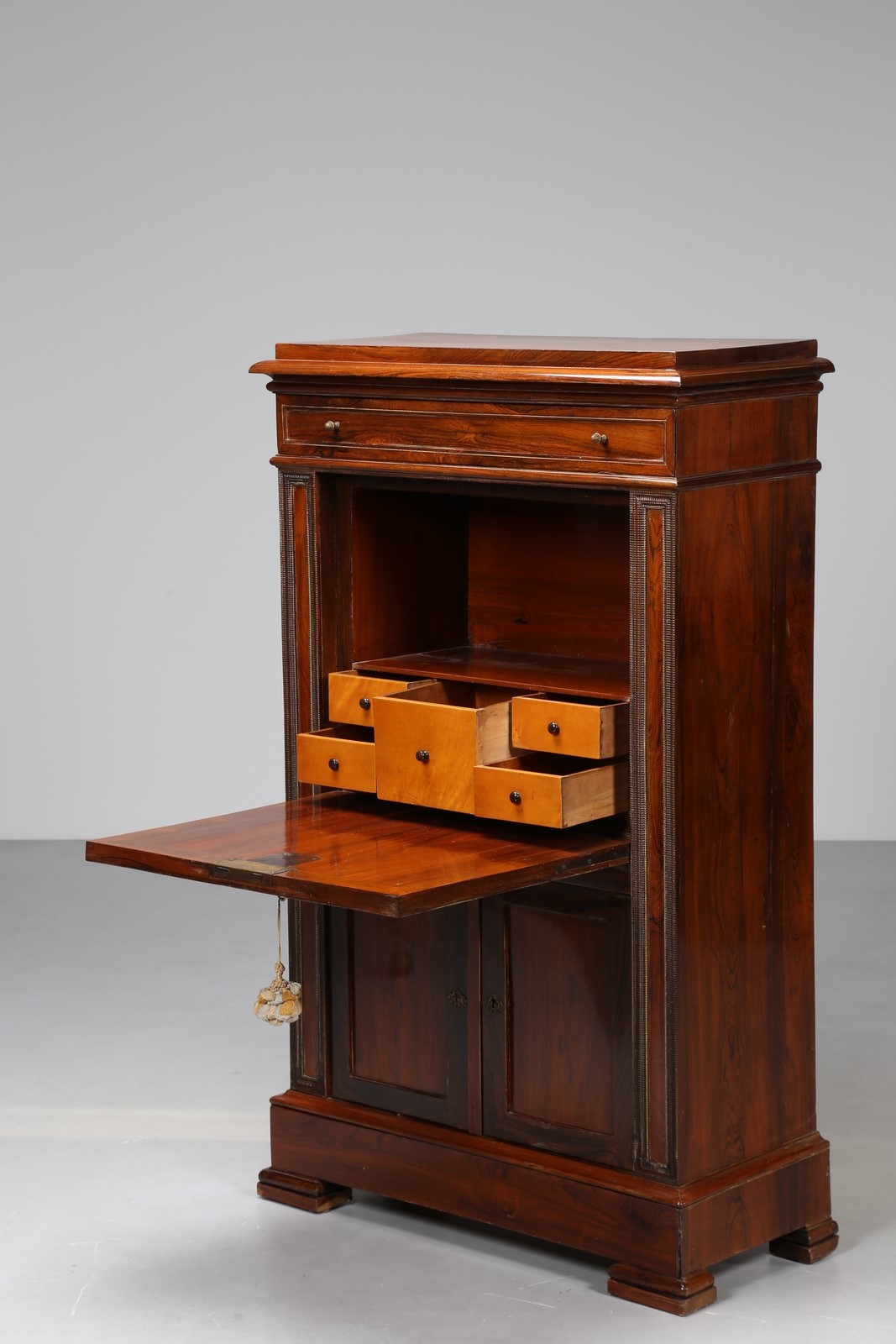 MANIFATTURA DEL XIX SECOLO Secretaire lastronato, con calatoia e tre...