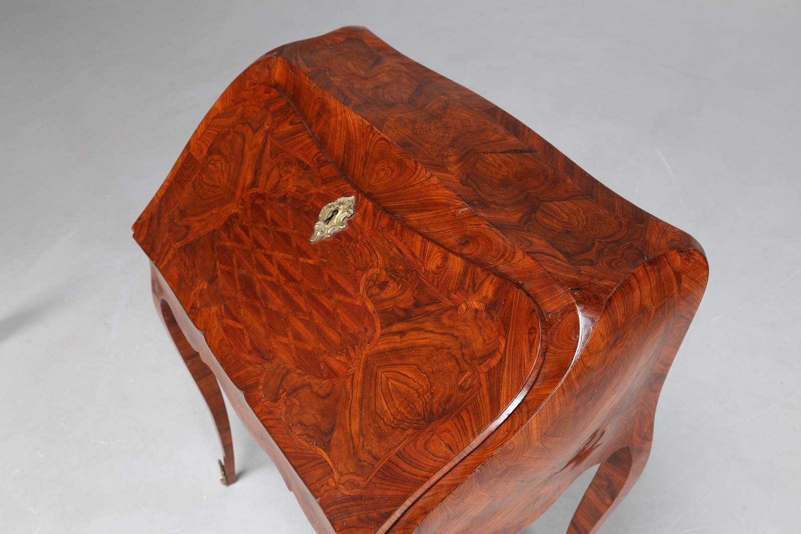 MANIFATTURA FRANCESE DEL XVIII SECOLO Ribaltina lastronata in legni pregiati,...