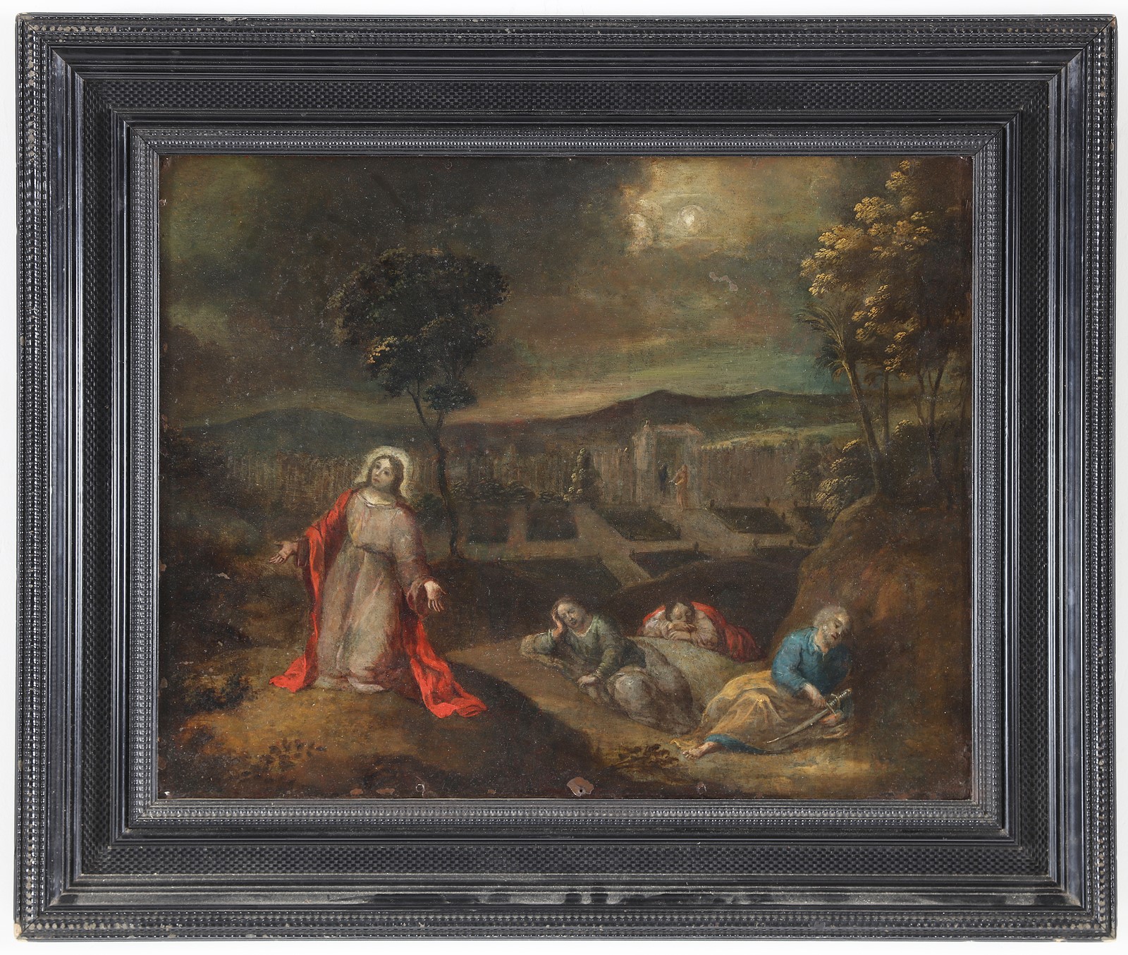 ARTISTA DEL XVII SECOLO. Gesù nel Getsemani. Olio su rame. Cm 65,00 x 50,00. . Cornice presente