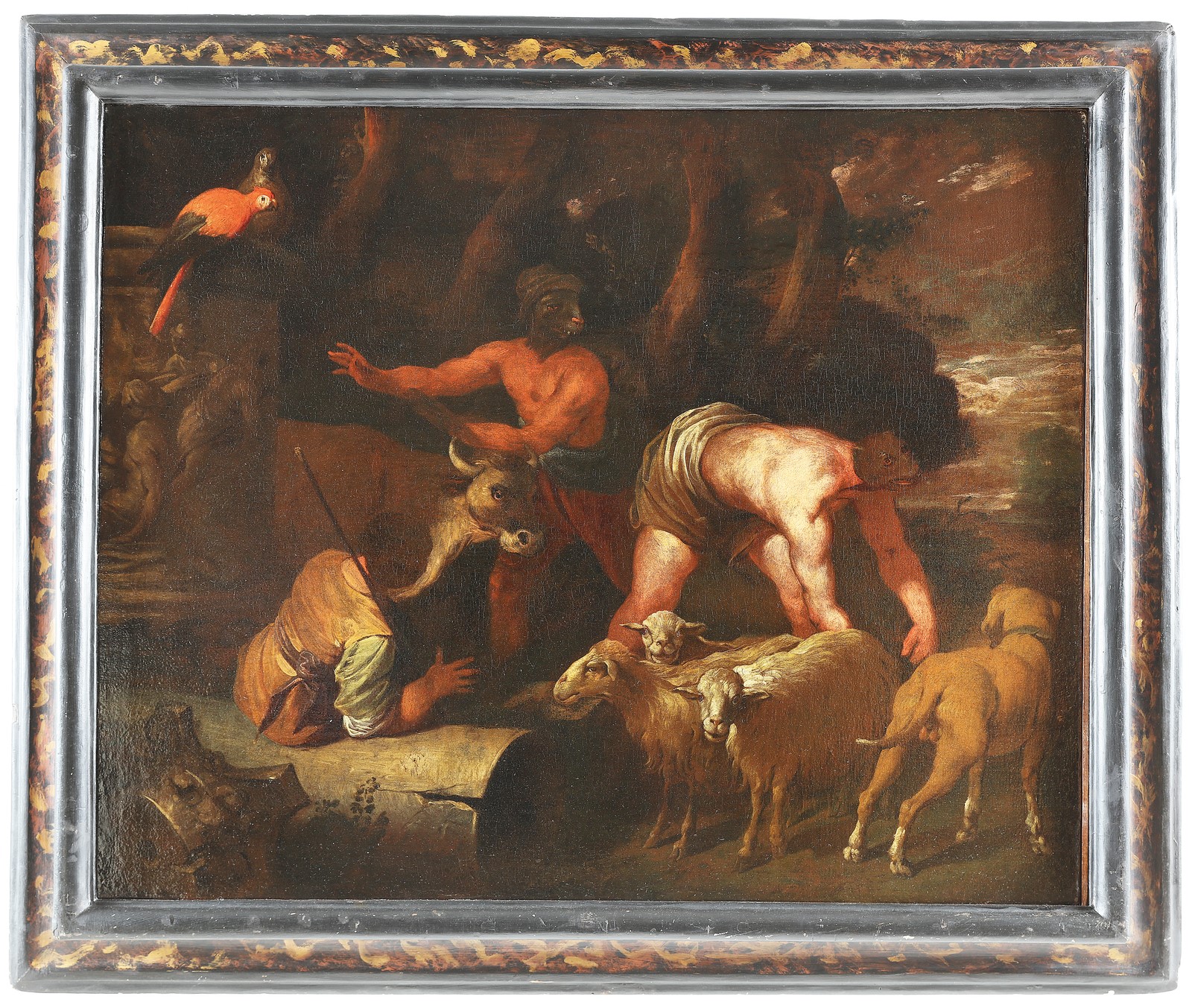 VASSALLO ANTONIO MARIA (1615 - 1657) I pastori di Latona. . Olio su tela. Cm...