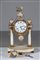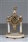 MANIFATTURA FRANCESE DEL XIX SECOLO Elegante orologio da tavolo, in marmo con guarniture in bronzo dorato, con cammeo rappresentante figura classica. . Cm 35,00.