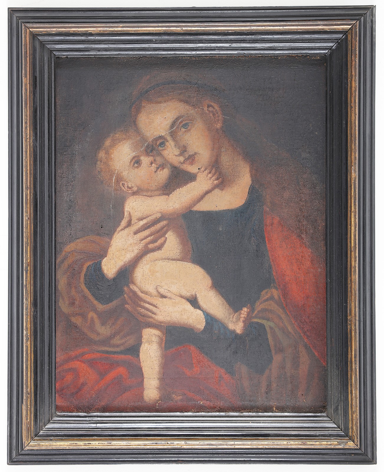 ARTISTA DEL XVIII SECOLO Madonna con Bambino. Olio su tela. Cm 45,00 x 61,00.