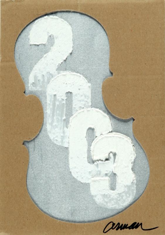 FERNANDEZ ARMAN (1928-2005) Calendario 2003 Tecnica mista su lamina cm 30x20,5 firmato in basso a destra proveniente da Mimmo Rotella il quale lo regalò all'attuale proprietario
