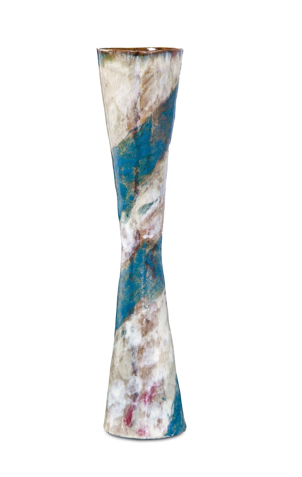 Fausto Melotti (1901-1986), 1965 ca, , Vaso in ceramica smaltato con decoro a fasce. Marchio con i sette punti sotto la base. Dimensioni cm 12x55. Restauri