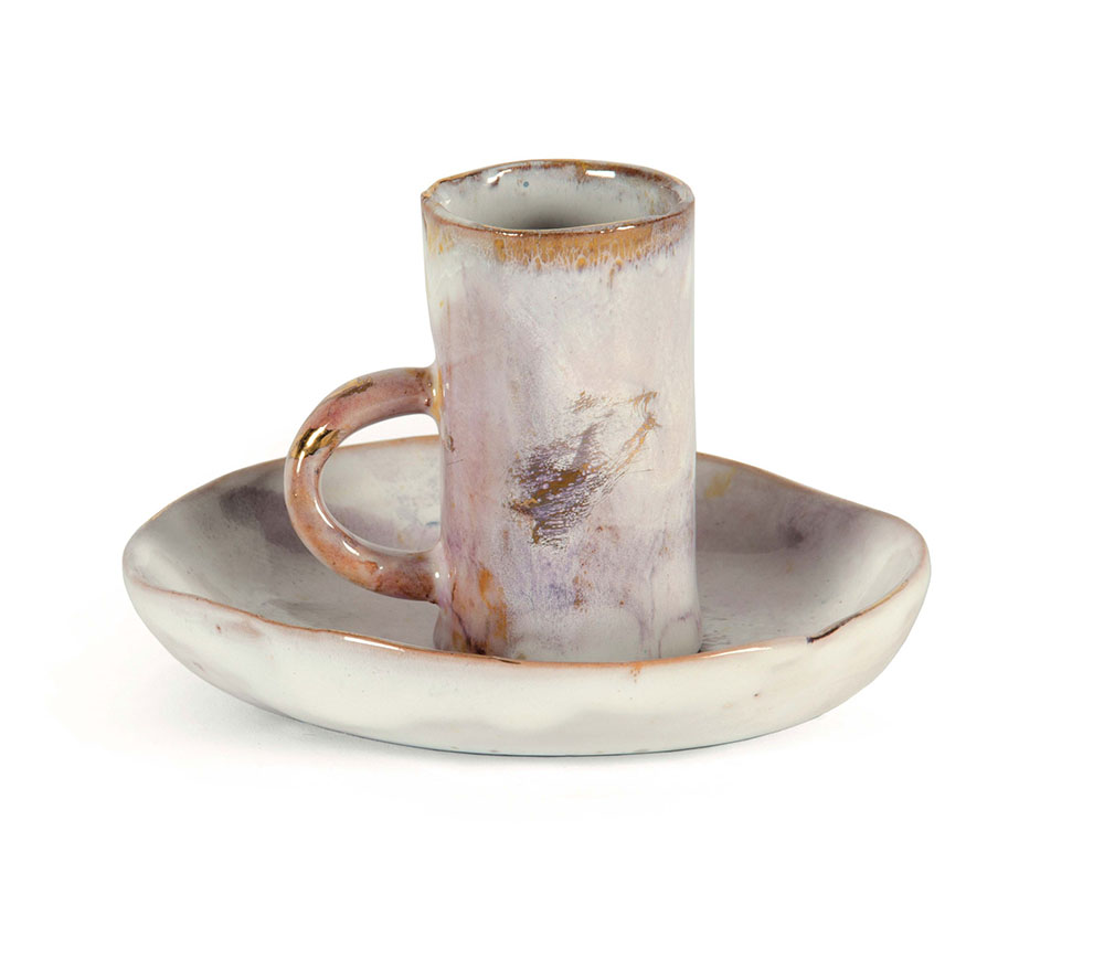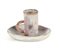 Fausto Melotti (1901-1986), Tazzina con piattino, 1956 circa, ceramica smaltata policroma, piattino cm 2,3 diam. cm 11, tazzina cm 6,6 diam. cm 3,7 Opera registrata presso l’Archivio Fausto Melotti con il n. KF 026