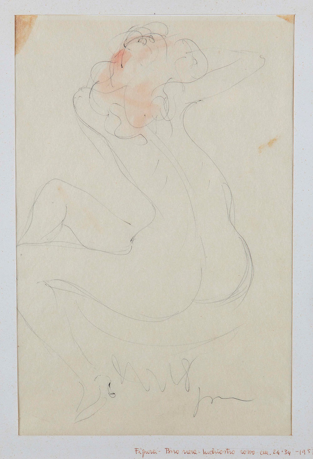 Lucio Fontana (1899-1968), Disegno, 1957 , biro nera e inchiostro rosso, cm 34x24 Opera registrata presso la Fondazione Lucio Fontana con il n. 1598/3
