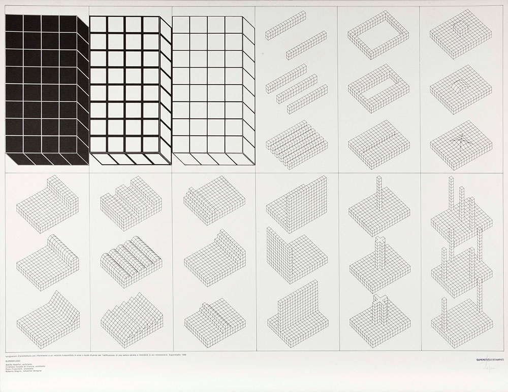 Group Superstudio (1966), Istogrammi, Litografia in bianco e nero, cm 69x87...