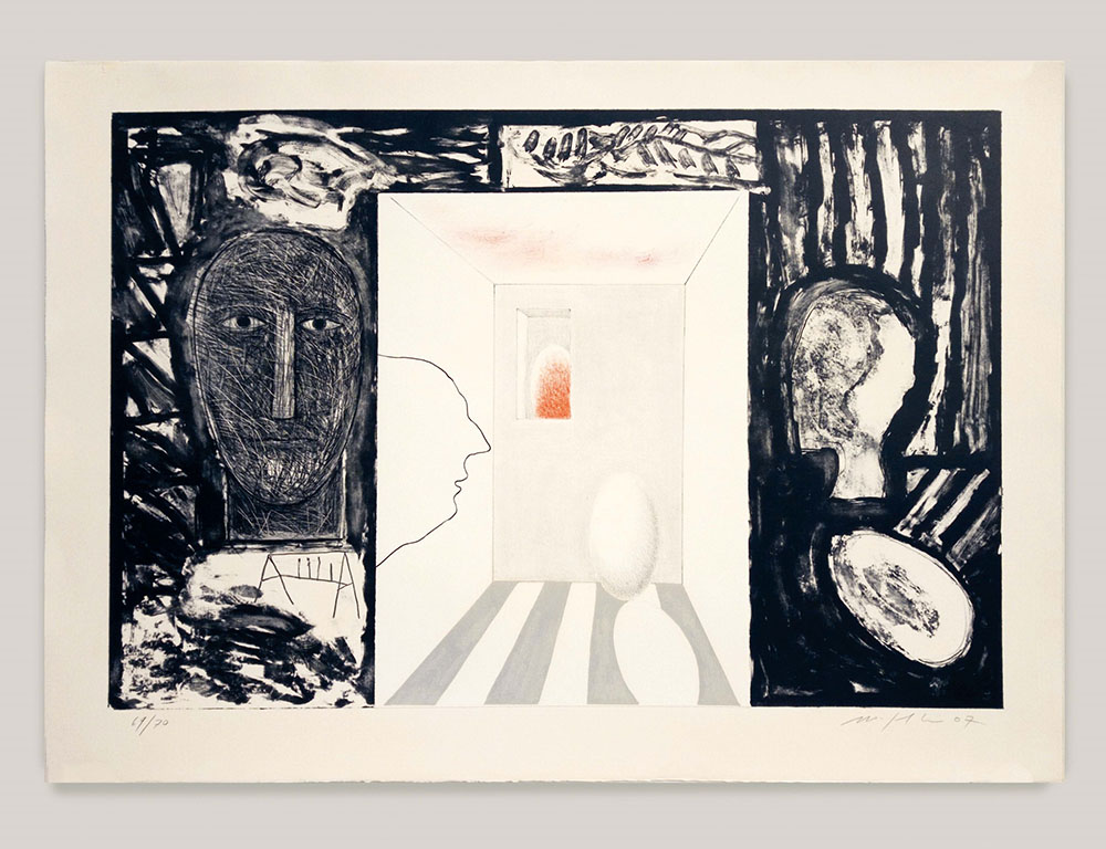 Mimmo Paladino (1948), Senza Titolo (Omaggio a Fausto Melotti), 2007, due litografie a colori e collage, cm 70x100 e cm 50x37. Edizione di 70 + XV Es. 69/70 firmato e datato in basso a destra, numerato in basso a sinistra