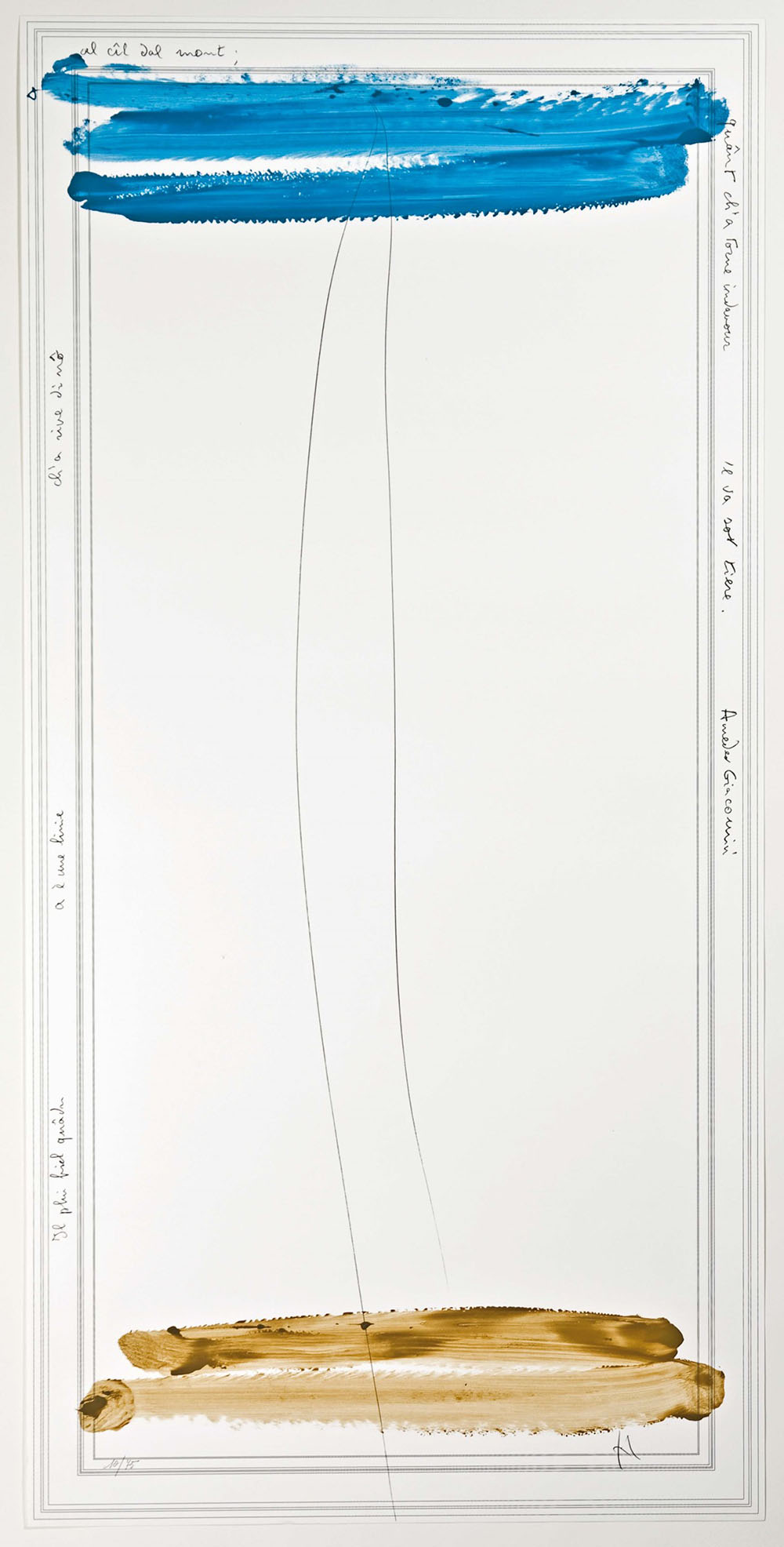 Luciano Fabro (1936-2007), Il Pliu biel quadr, 1989, serigrafia con interventi di colore per mano dell'artista, cm 151,5x74,5 Edizione di 75 + XXV + 5 P.A. Es. XXIII/XXV firmato in basso a destra, numerato in basso a sinistra, dedicato in basso