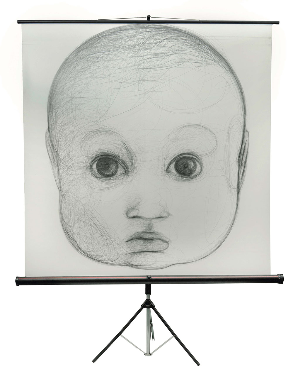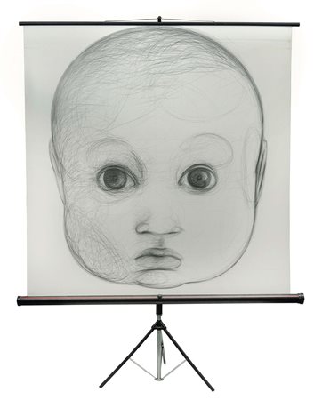 Massimo Kaufmann (1963), Senza Titolo, disegno su telo per proiezione (con treppiedi), cm 154 (cm 217)x157 Autentica dell'artista su fotografia