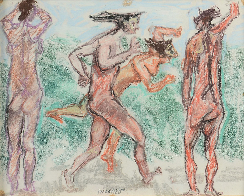 Fausto Pirandello (1899-1975), Bagnanti, pastello su carta, cm 22x28 firmato in basso a sinistra
