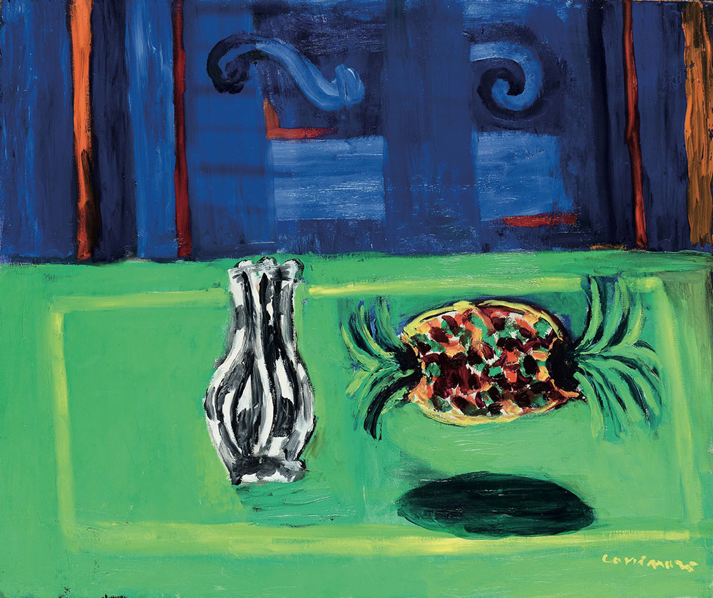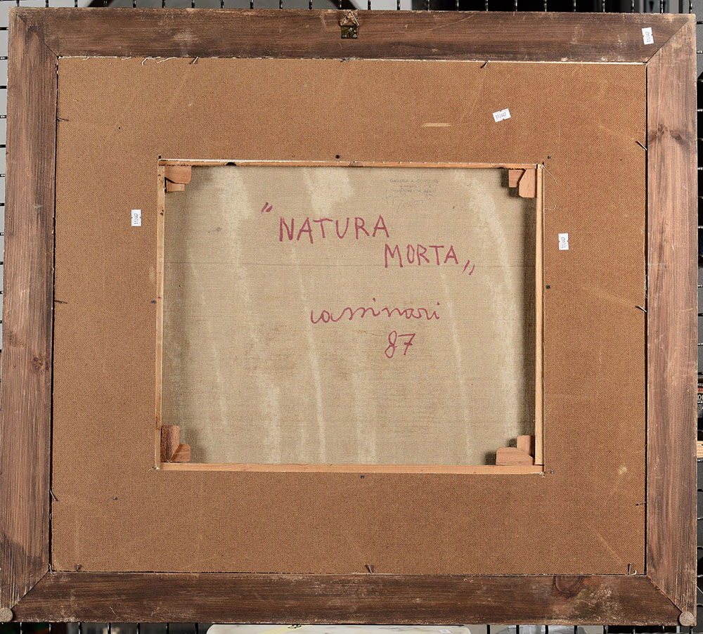 Bruno Cassinari (1912-1992), Natura morta, 1987, olio su tela, cm 50x60 firmato in basso a destra intitolato, datato e firmato al retro Timbro e firma Galleria A. Consorti, Roma