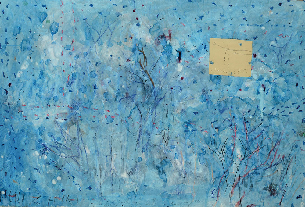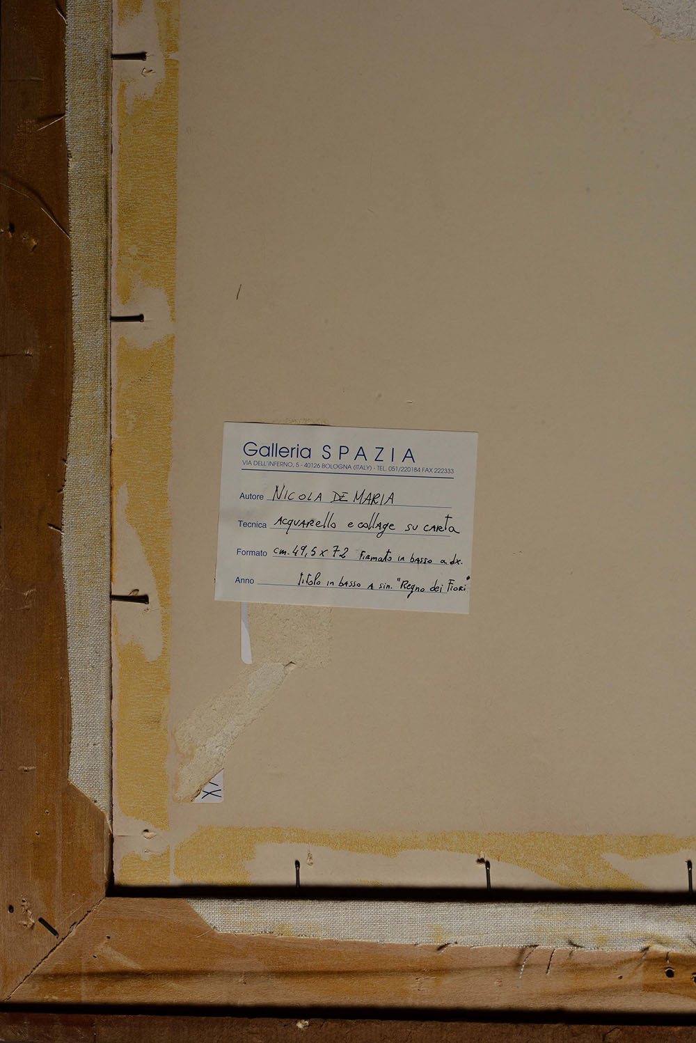 Nicola De Maria (1954), Regno dei fiori - Direzione degli insetti in campagna, 1977-80, acquerello e collage su carta, cm 50,5x73,5 intitolato e firmato in basso Autentica su fotografia dell’artista Etichetta al retro Galleria Spazia, Bologna