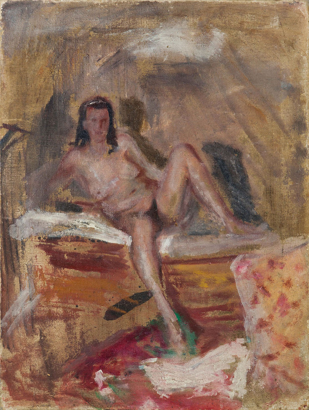 Guido Tallone (1894-1967), Nudino di donna "Venezia 43", 1940, olio su tela, cm 64x47,5, firmato, datato e intitolato a retro Autentica su fotografia Pubblicato sul Catalogo Ragionato 1998, vol.I, Gigliola Tallone, 1940-41, pag. 94 n.103