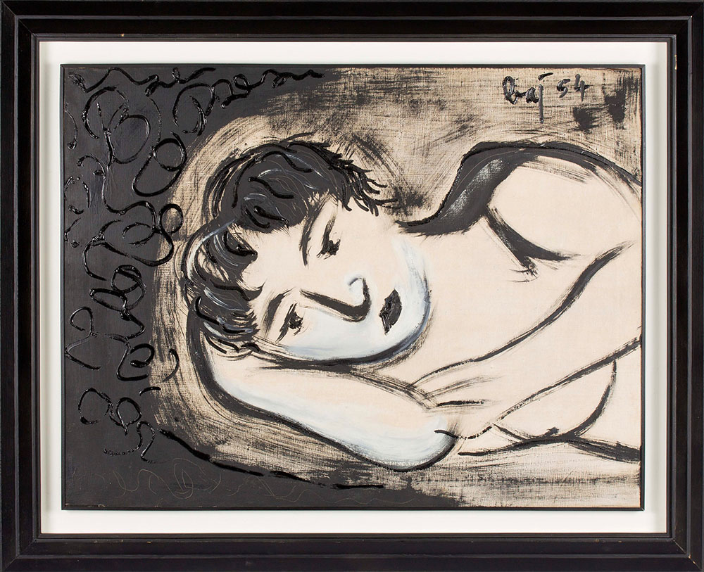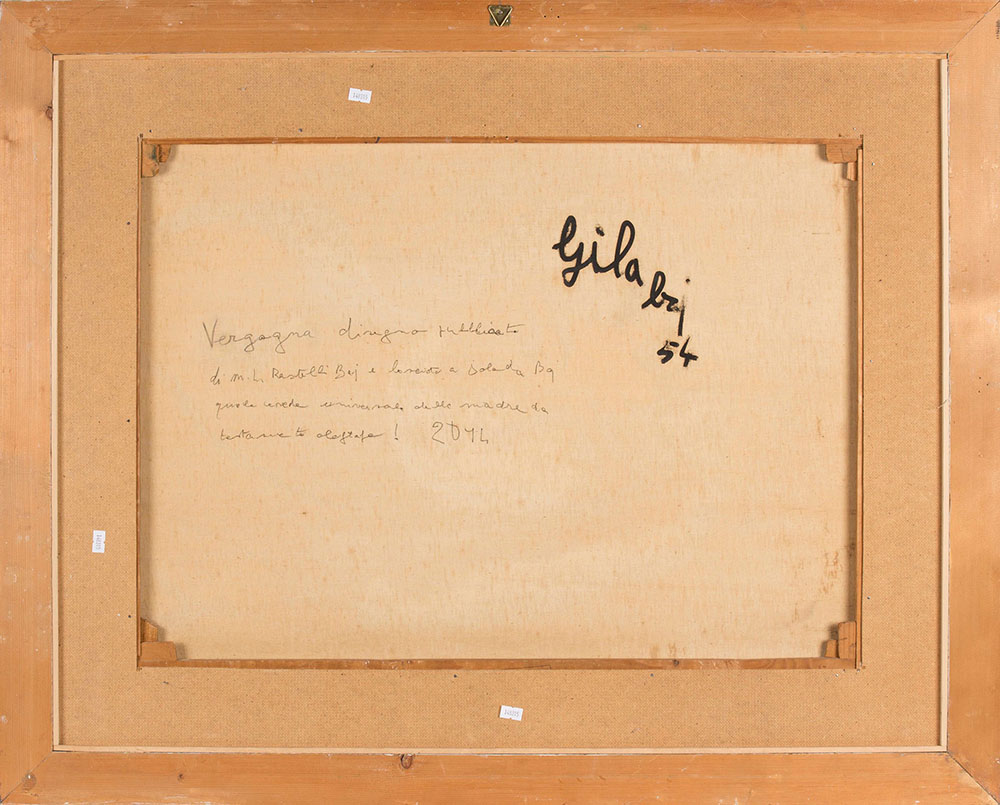 Enrico Baj (1924-2003), Gigina, 1954, olio su tela, cm 60x80 firmato e datato in alto a destra firmato e datato al retro Opera pubblicata sul Catalogo Generale, Bolaffi Editore, con il n. 115, pg. 37