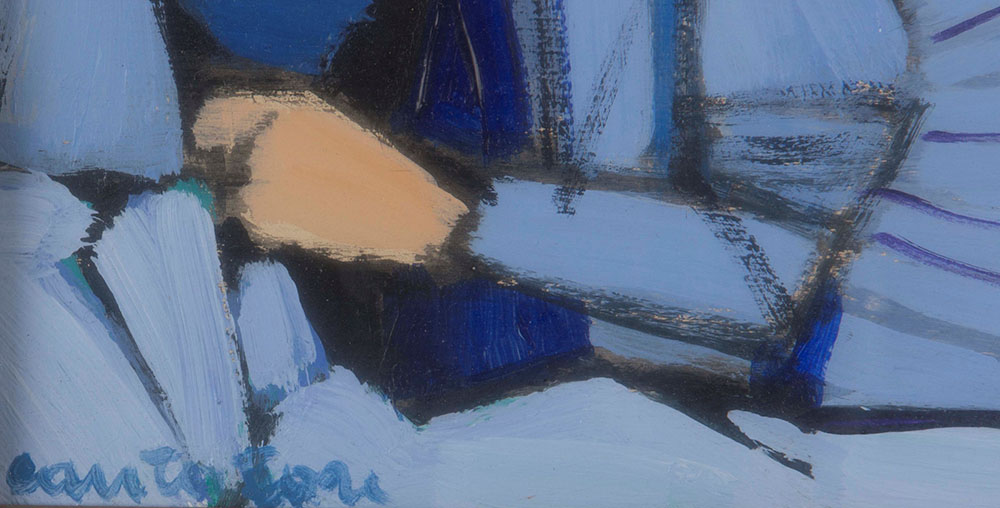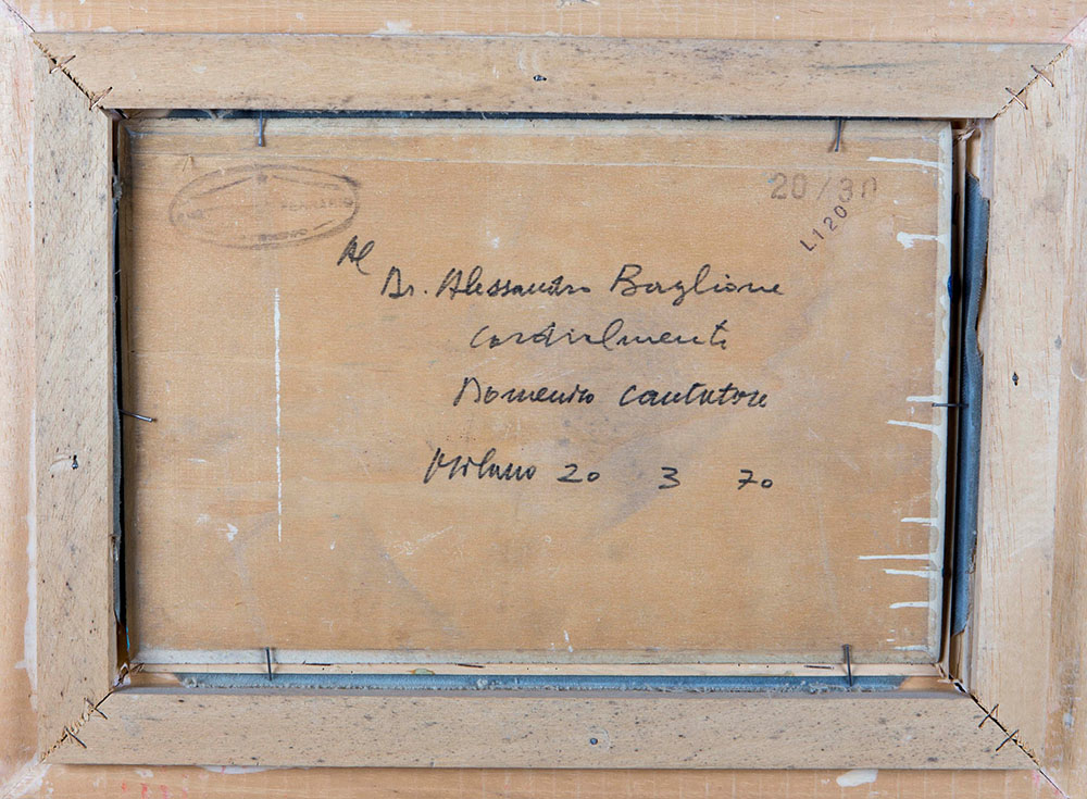 Domenico Cantatore (1906 - 1998), Figura distesa, 1970, olio su tavola, cm 21x30,5 firmato in basso a sinistra dedicato, firmato e datato 20/03/1970 al retro