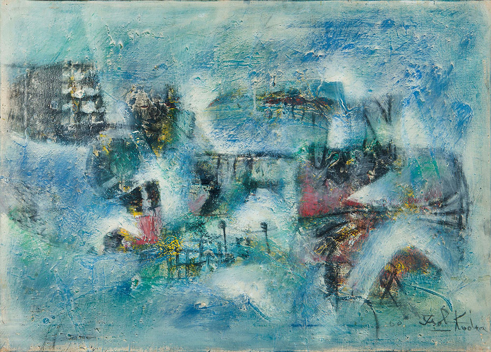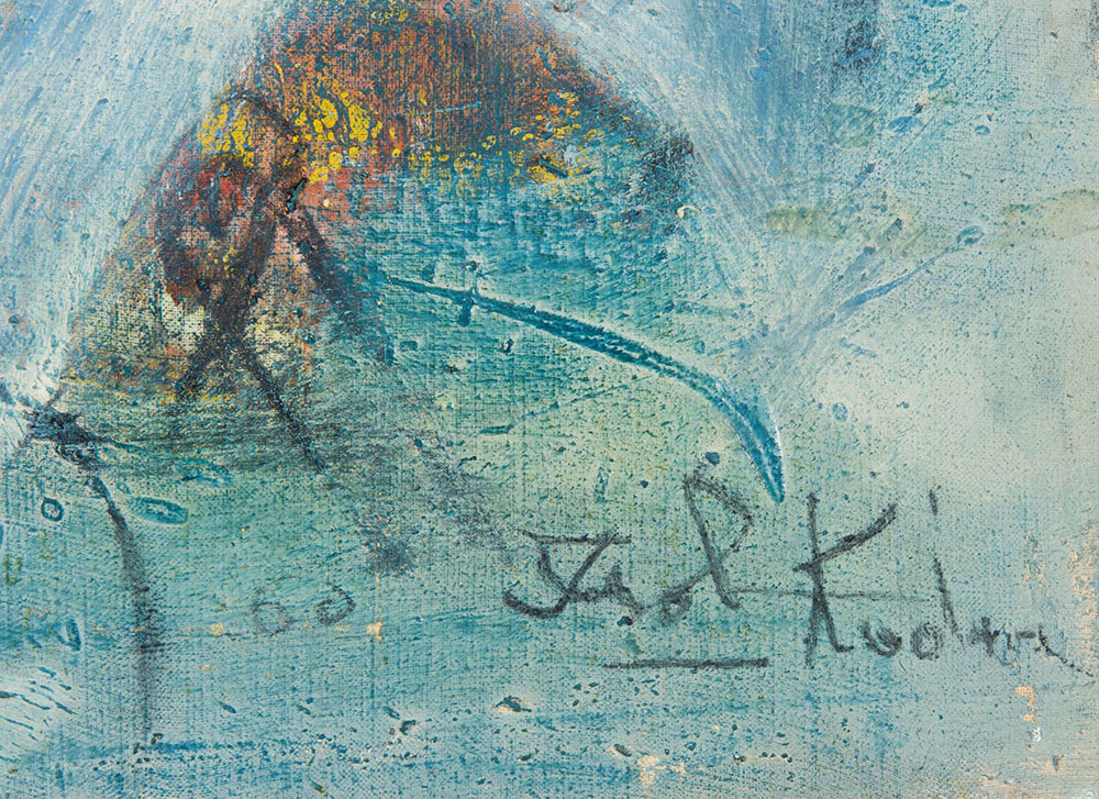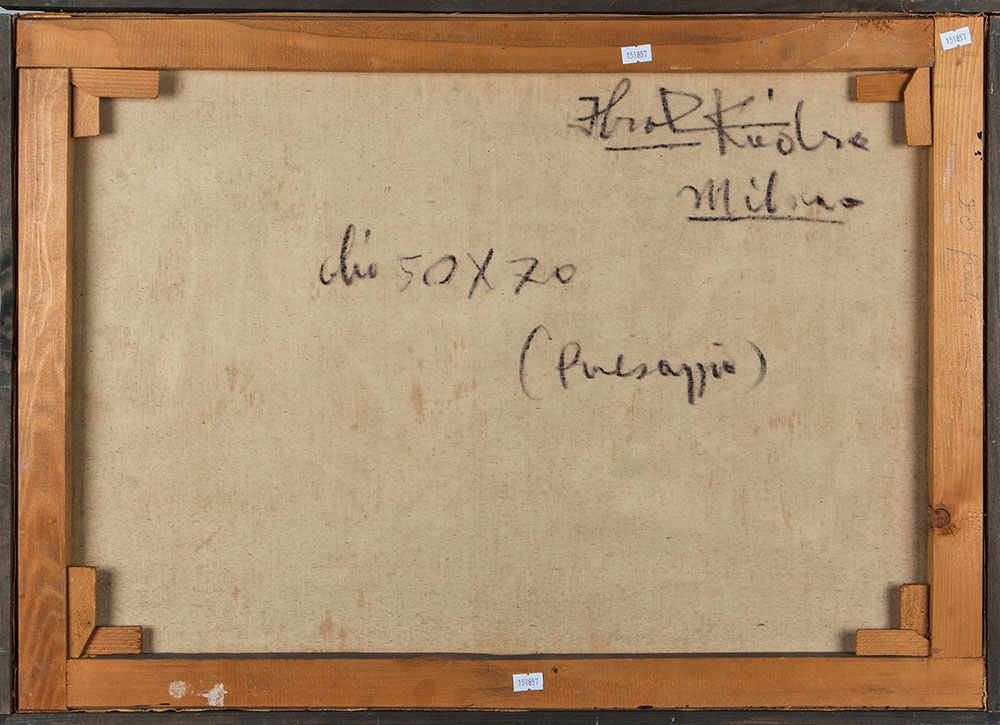 Ibrahim Kodra (1918-2006), Paesaggio, anni '60, olio su tela, cm 50x70 firmato in basso a destra, intitolato al retro