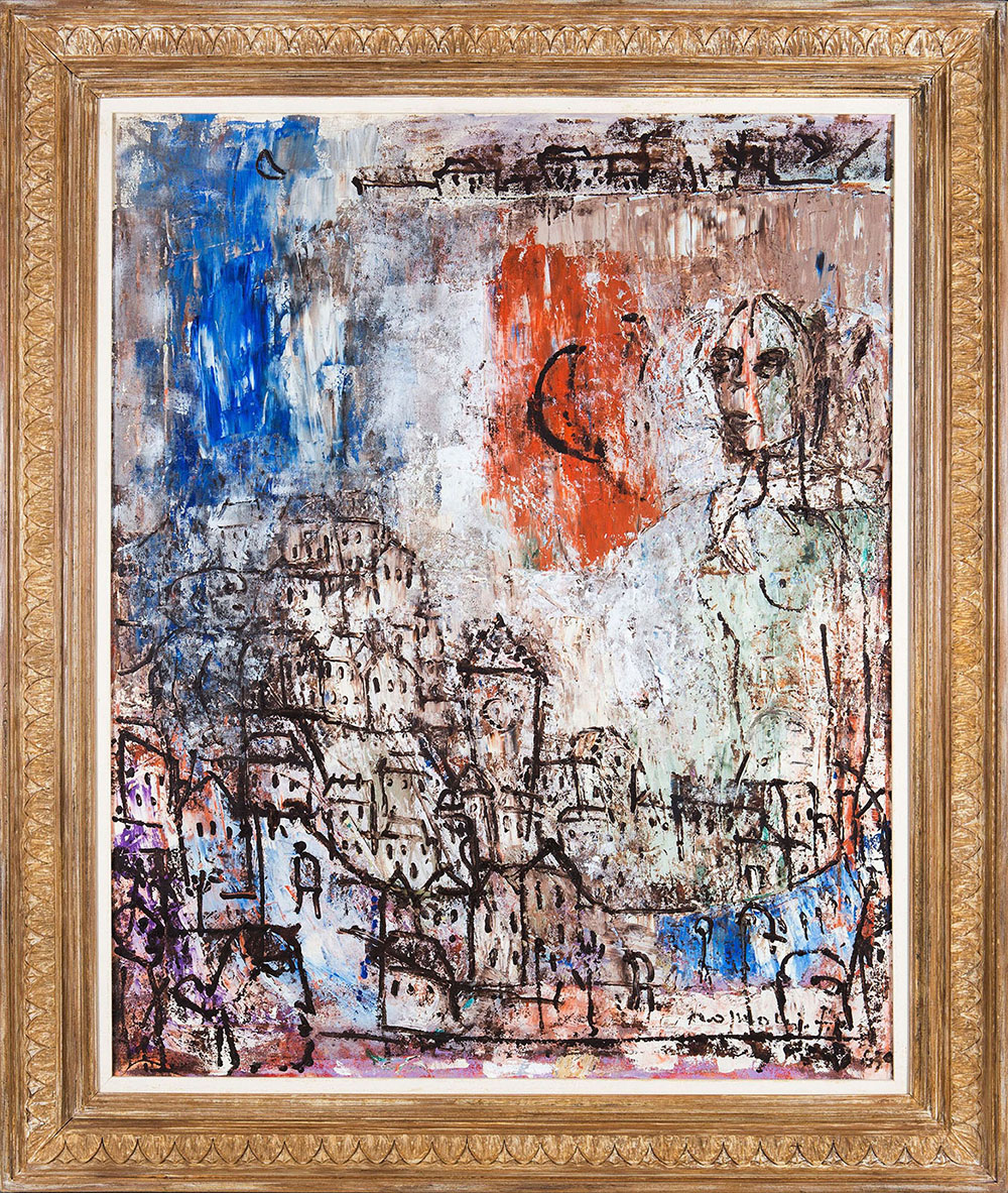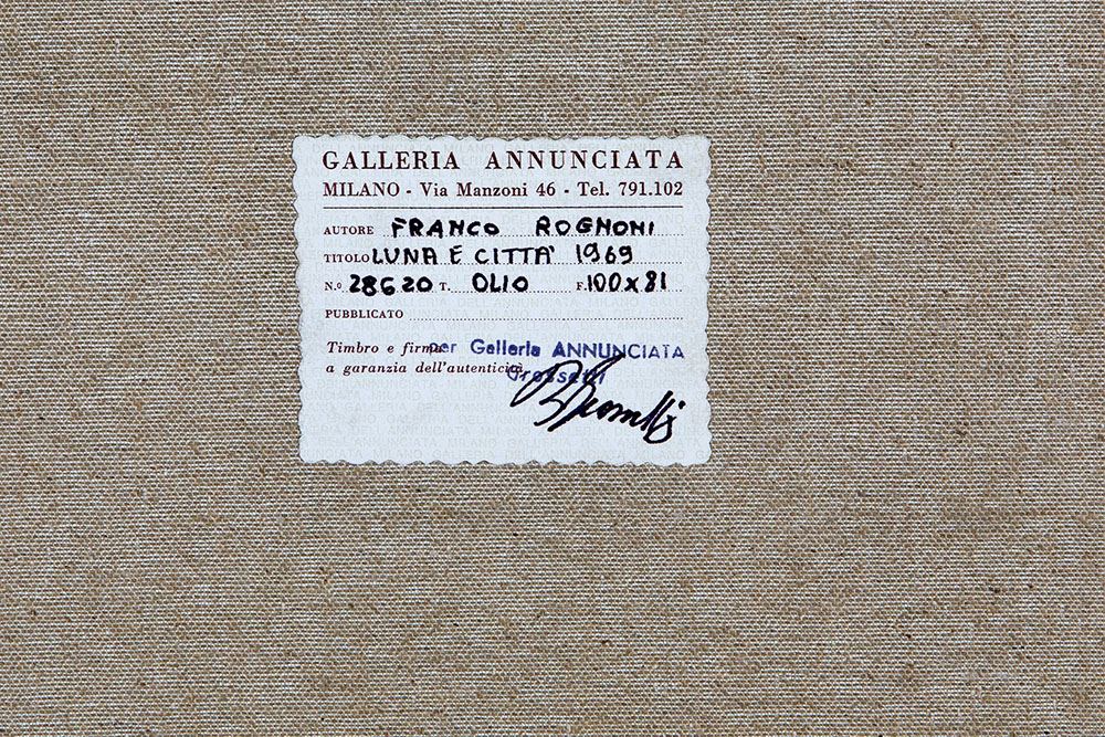 Franco Rognoni (1913-1999), Luna e città, 1966, olio su tela, cm 100x81...