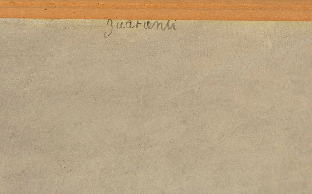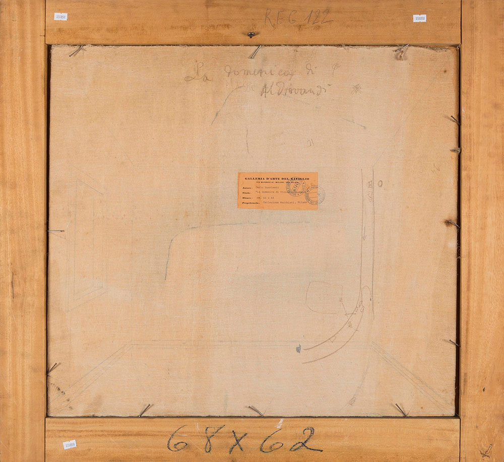 Carlo Guarienti (1923), La domenica di Ulisse Aldovrandi, olio su tavola, cm 62x67,3 intitolato al retro Etichetta al retro: Galleria d'Arte del Naviglio