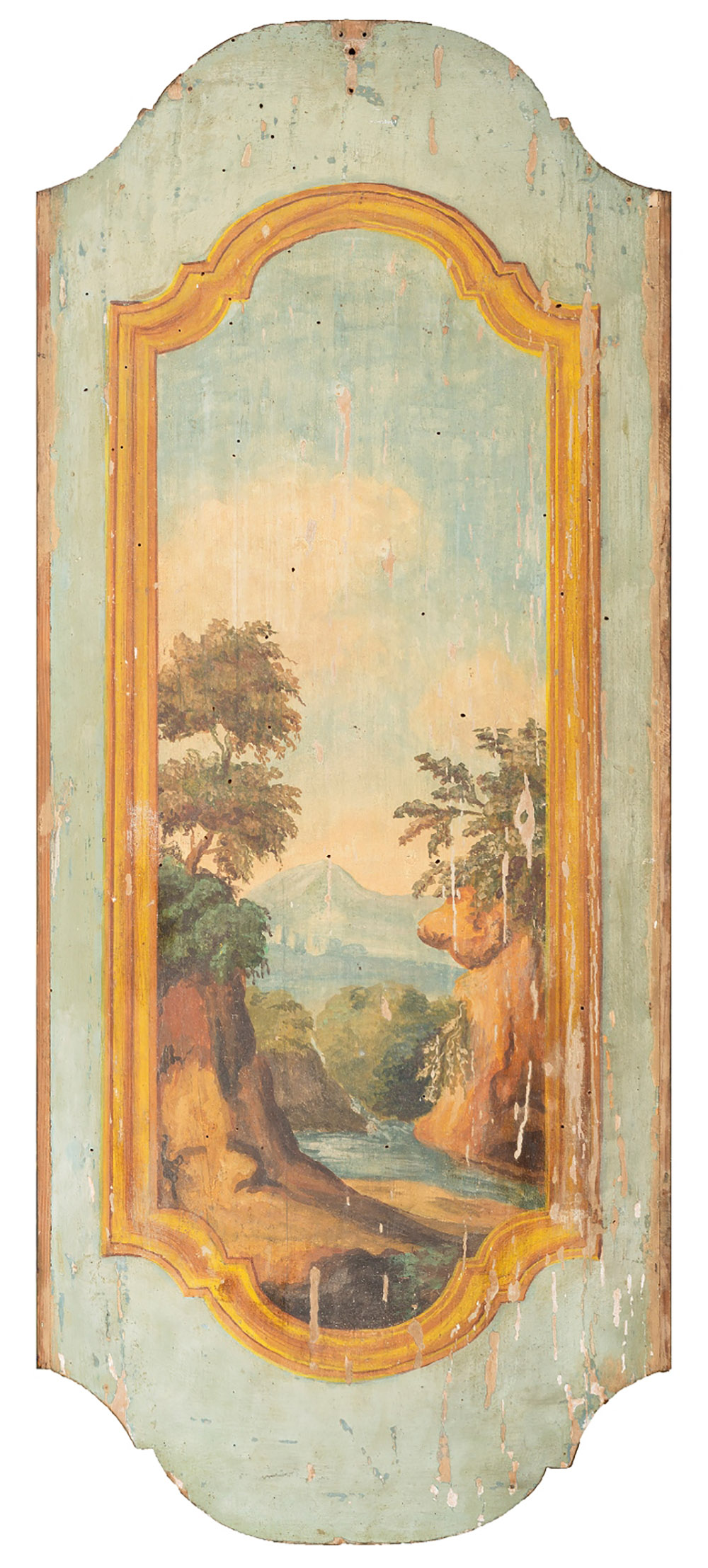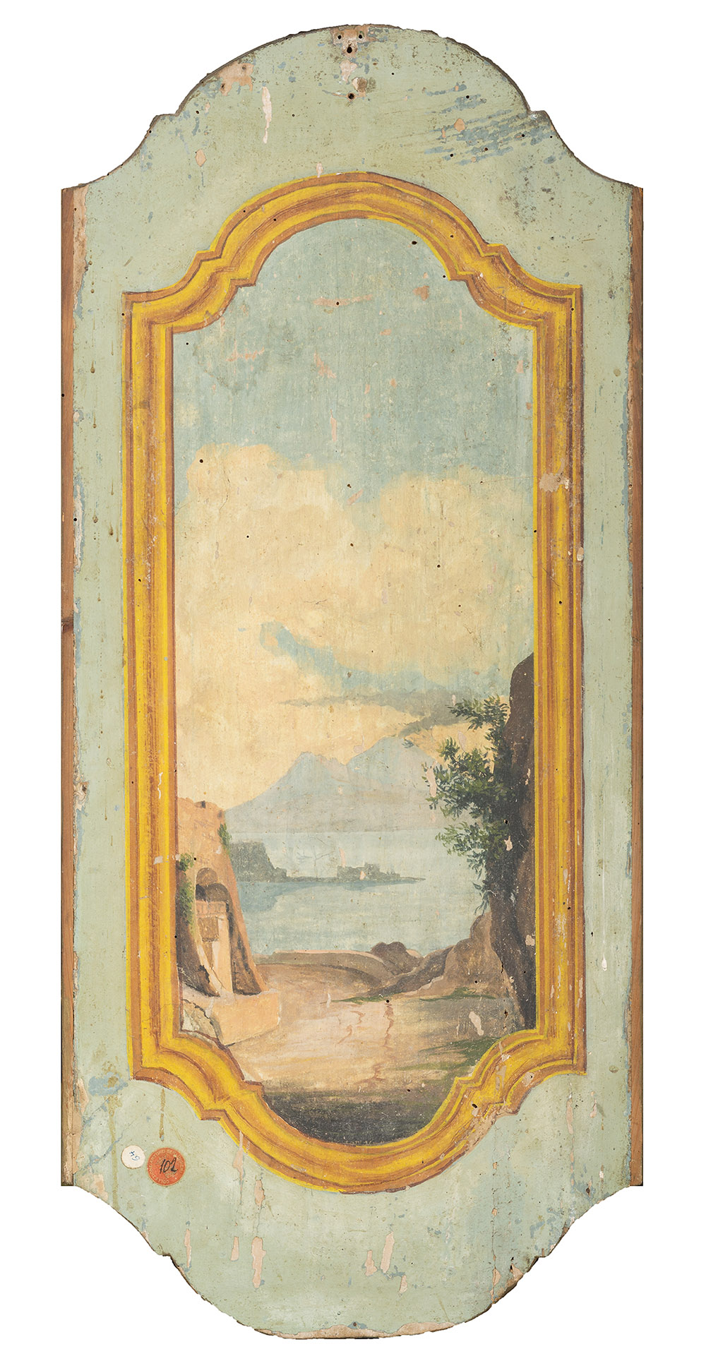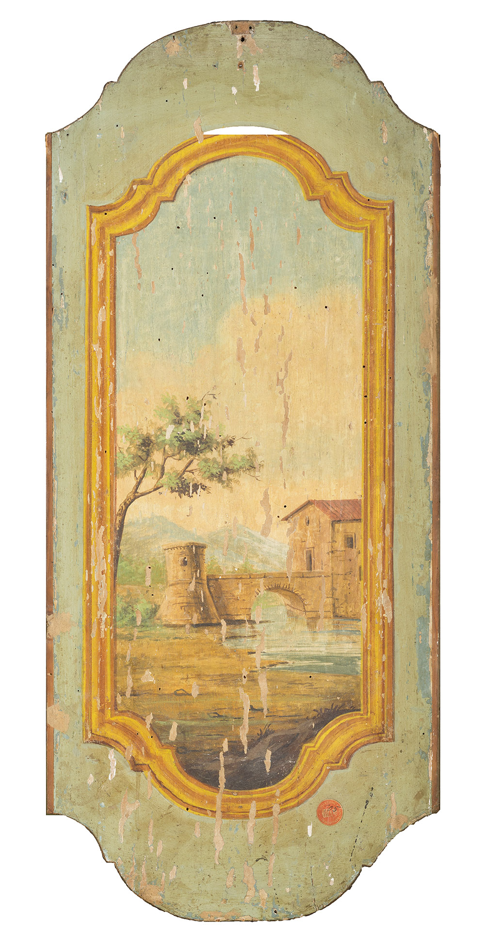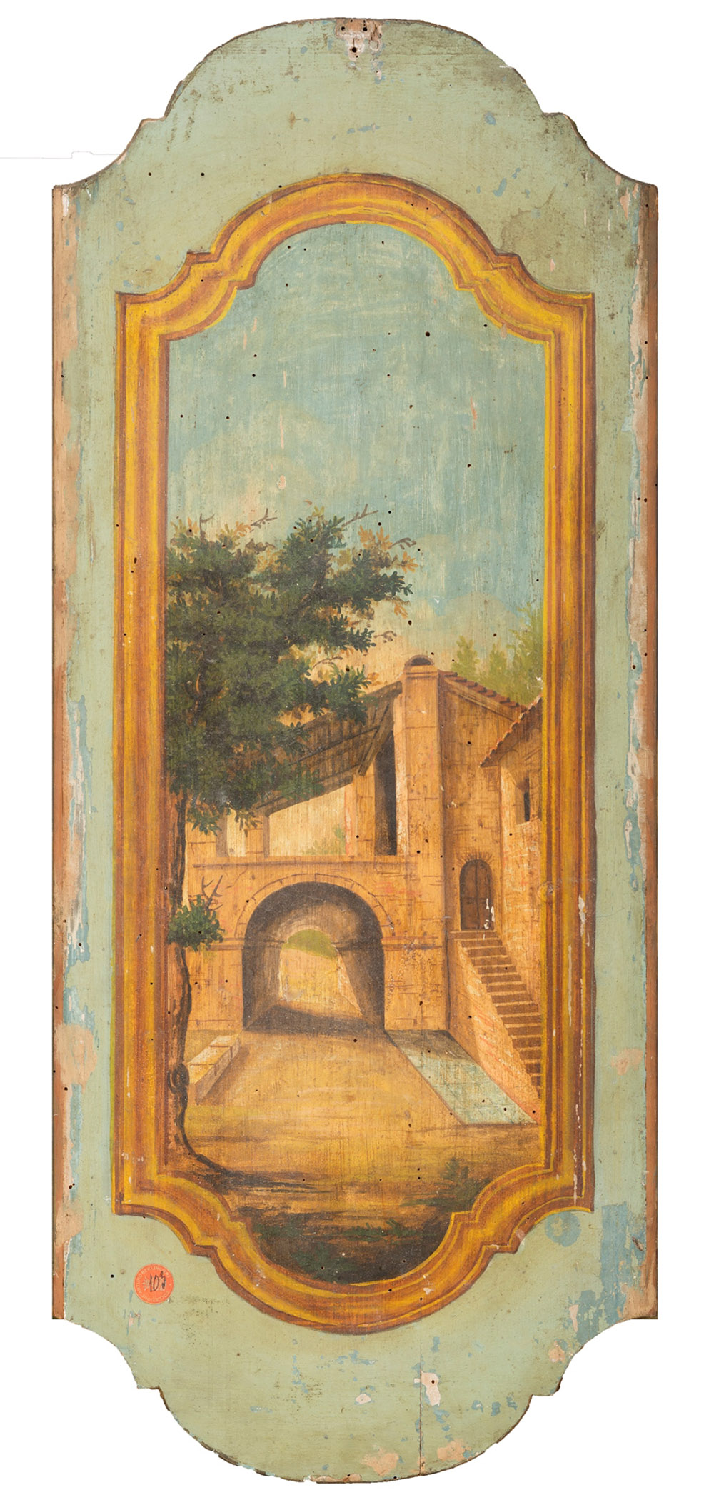QUATTRO PANNELLI DOUBLE FACE , raffiguranti paesaggi ad olio su tavola , con cornice dorata cm 95 x 40, Italia XVIII secolo