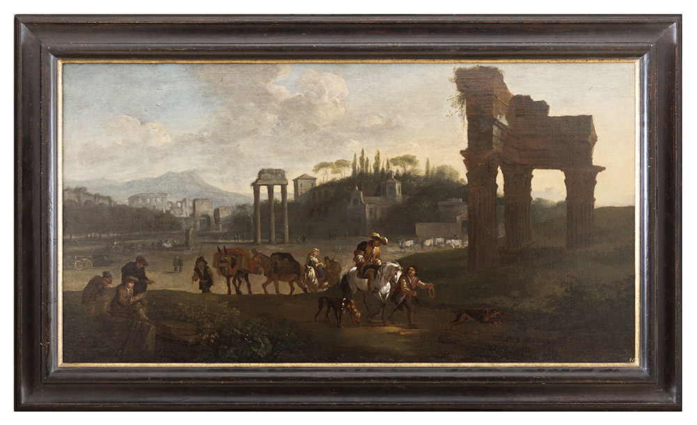 PIETER VAN LAER detto BAMBOCCIO Att.a., Haarlem 1599 - 1642, Foro Boario Roma, Olio su tela cm 71 x 133
