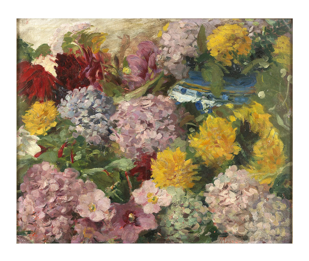 PITTORE FINE XIX SECOLO, Fiori, Olio su cartone cm 45 x 55, Non firmato,...