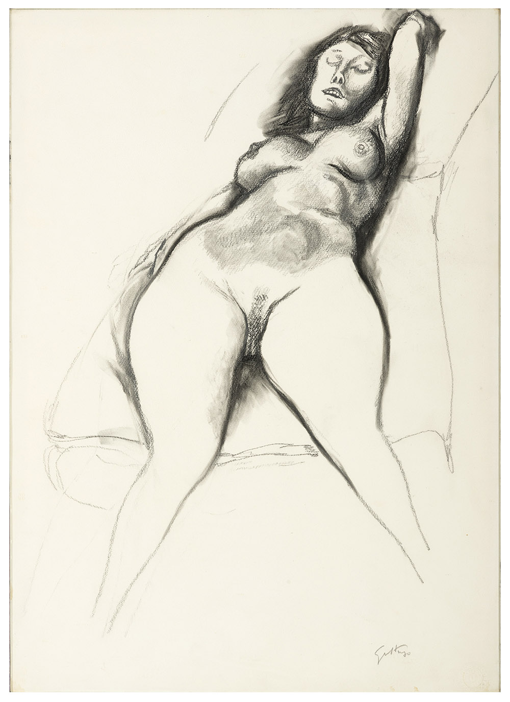 RENATO GUTTUSO, Bagheria 1911 - Roma 1987, Nudo di donna , Matita grassa su cartoncino dubex choetter, Misure cm 50, 5 x 36, 2, Firma in basso a destra, Al retro abbozzo di nudo, Acquisita dall'artista dall'attuale proprietario , Autentica archivi Guttuso a carico dell'acquirente