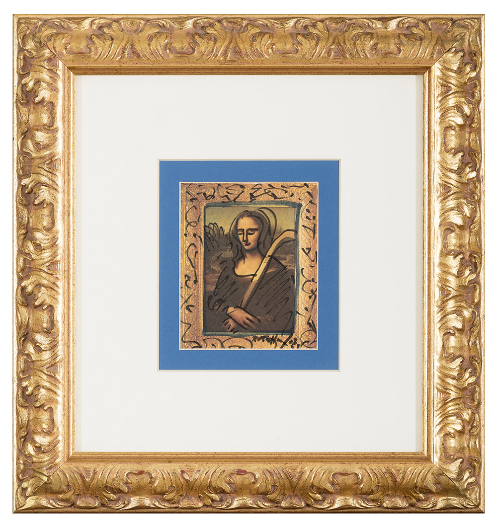 MIMMO ROTELLA, Catanzaro 1918 - Milano 2006, Gioconda 2003, Tecnica mista su carta cm 16 x 13, Firma e data in basso a destra, Filmato su CD con Mimmo Rotella che crea l'opera, Autentica su foto Viola Arte Milano, Autentica su foto Arte Mercato Aste