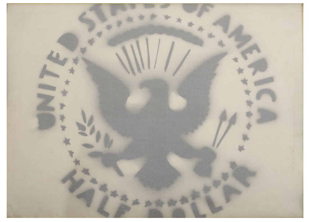 FRANCO ANGELI, Roma 1935 - 1988, Half Dollar 1968, Acrilico e toulle su tela cm 50 x 70, Firma al retro, Provenienza, Asta Christies 14 dicembre 1992 lotto 63, Collezione privata Roma, Autentica su foto Christies 1992