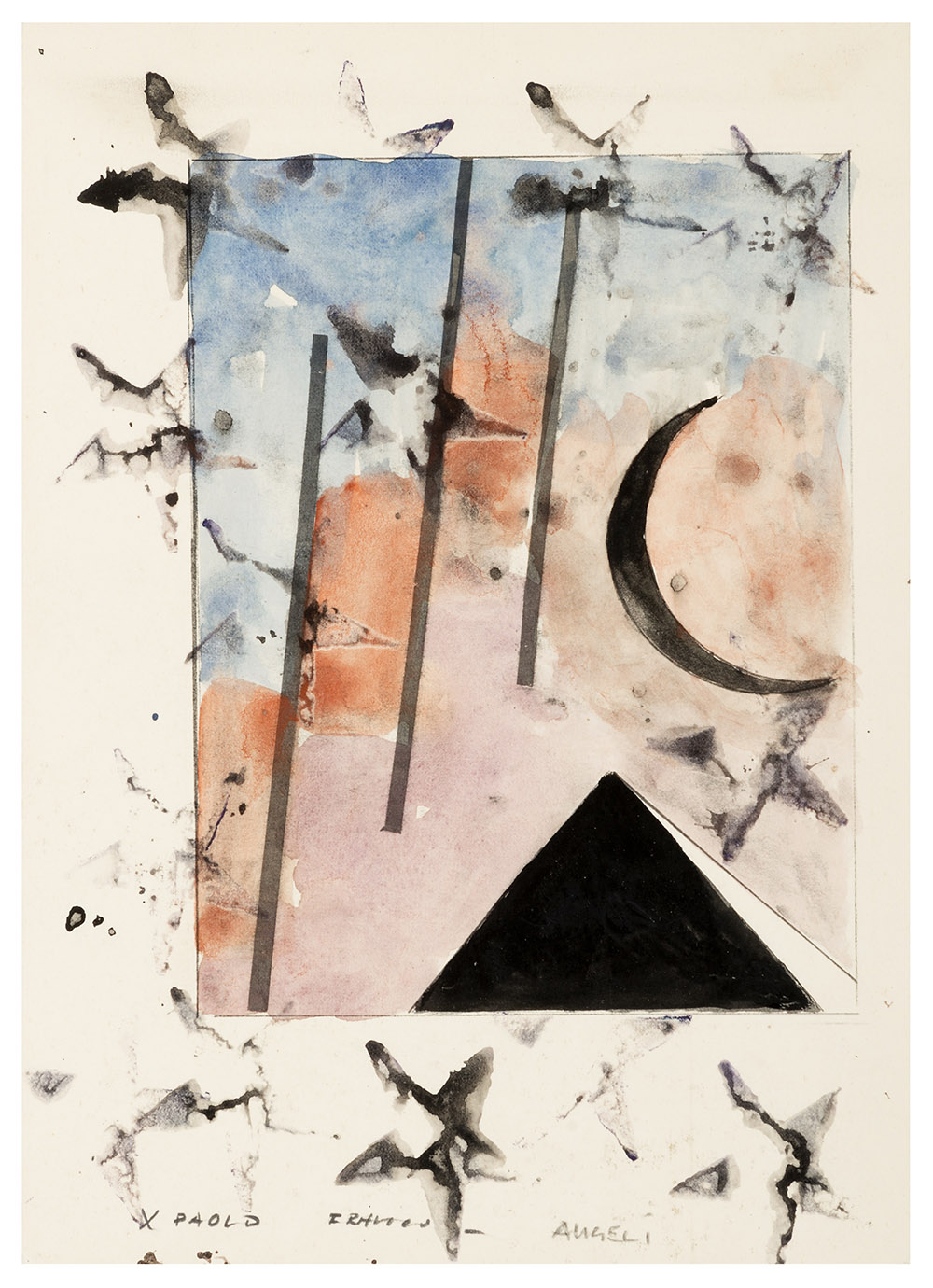 FRANCO ANGELI , Roma 1935 - 1988, Piramide, Acquerello su carta cm 29 x 21,...