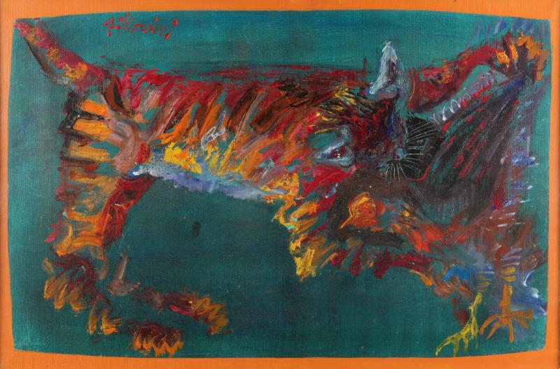 FANTONI ACHILLE FILIPPINI (1868-1910) La preda del Felino 1971 olio su tela cm 50x75 firmato in alto a sinistra