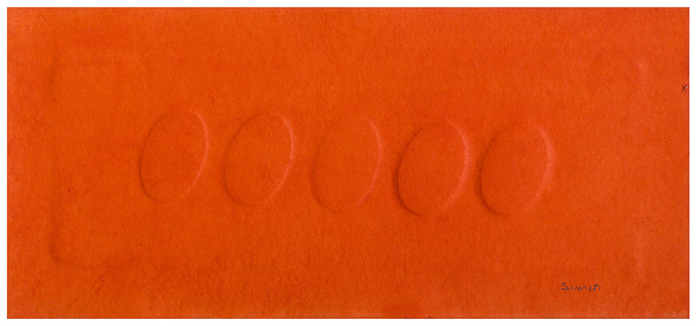 TURI SIMETI, Alcamo 1929, Cinque ovali 1995 ca., Tecnica mista su cartone cm 20 x 42, Firma in basso a destra, Autentica su foto Archivio Simeti signed by the artist