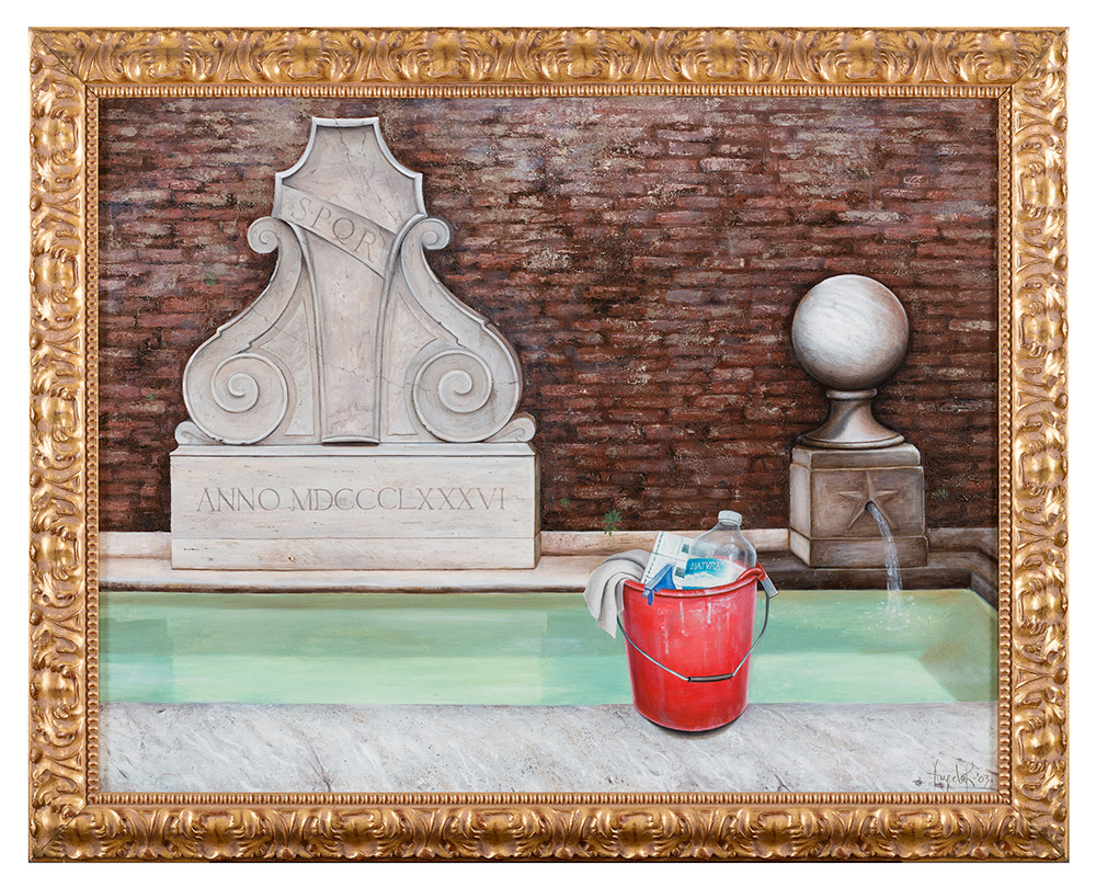 ANGELINA KUZMANOVIC, Negotin 1968, Anacronismo 2003, Olio su tela cm 70 x 90, Firma e data in basso a destra