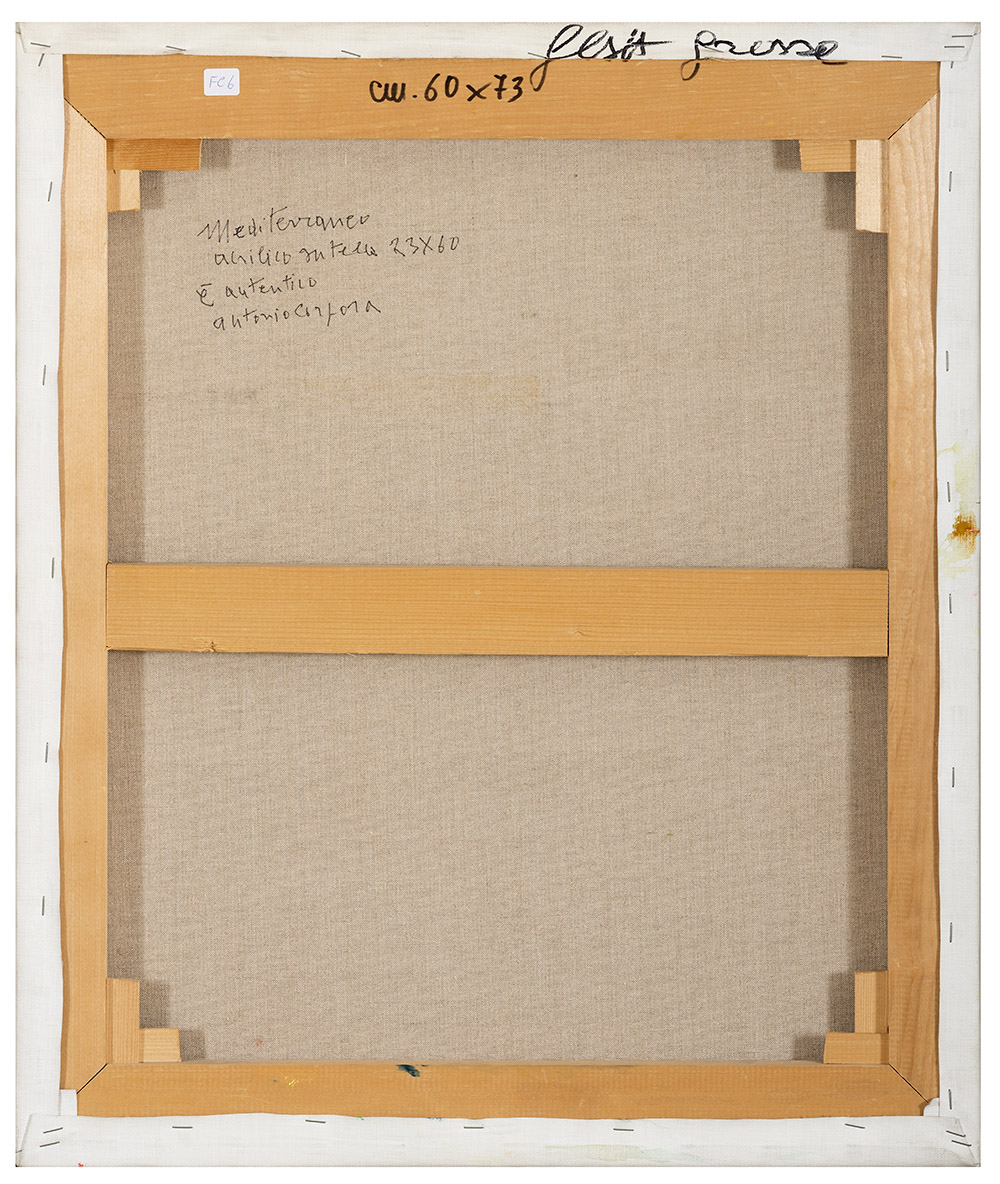 ANTONIO CORPORA, Tunisi 1909 - Roma 2004, Mediterraneo 1995, Acrilico su tela cm 73 x 60, Firma in basso a destra, Firma per autentica e titolo al retro, Provenienza, Acquisito dall'artista dall'attuale proprietà