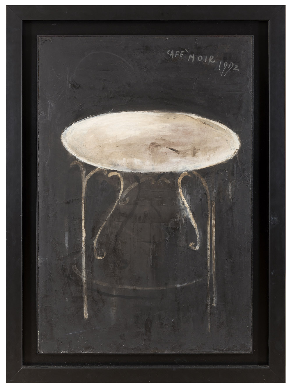 PIERO PIZZI CANNELLA, Rocca di Papa 1955, Caffè noir 1992, Tecnica mista su tavola cm 90 x 60, Firma al retro, Autentica su foto Archivio Pizzi Cannella 2012