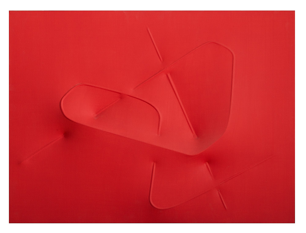 AGOSTINO BONALUMI, Vimercate 1935 - 2013, Rosso 1998, Tela estroflessa e tempera cm 57 x 79, Firma e data al retro, in teca di plexiglass, Autentica su foto Archivio Bonalumi