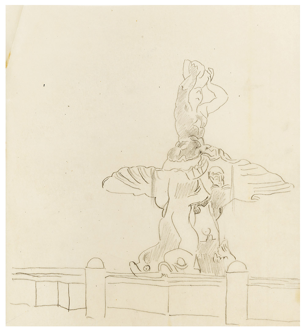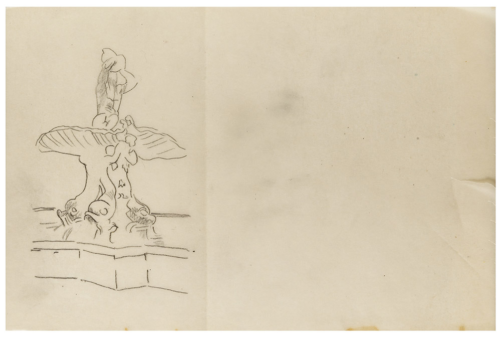 GINO SEVERINI, Cortona 1883 - Parigi 1966, Fontana Barberini 1940 ca., Fontana Barberini 1940 ca., Due piccole matite su carta velina, cm 13 x 10 e cm 19, 1 x 17, 3, Provenienza, Acquisito dall'attuale proprietà da Casa Severini Roma, Visionate con esito positivo da Archivio Severini 9 maggio 2016, ed è a vs. disposizione per stilare l'autentica