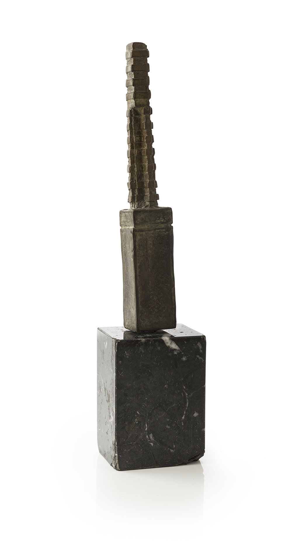 GIULIO D'ANNA, Villarosa 1908 – Messina 1978, Senza titolo 1940 ca., Piccola scultura a stele in bronzo patinato h. cm 15, 5, Firma in basso in verticale