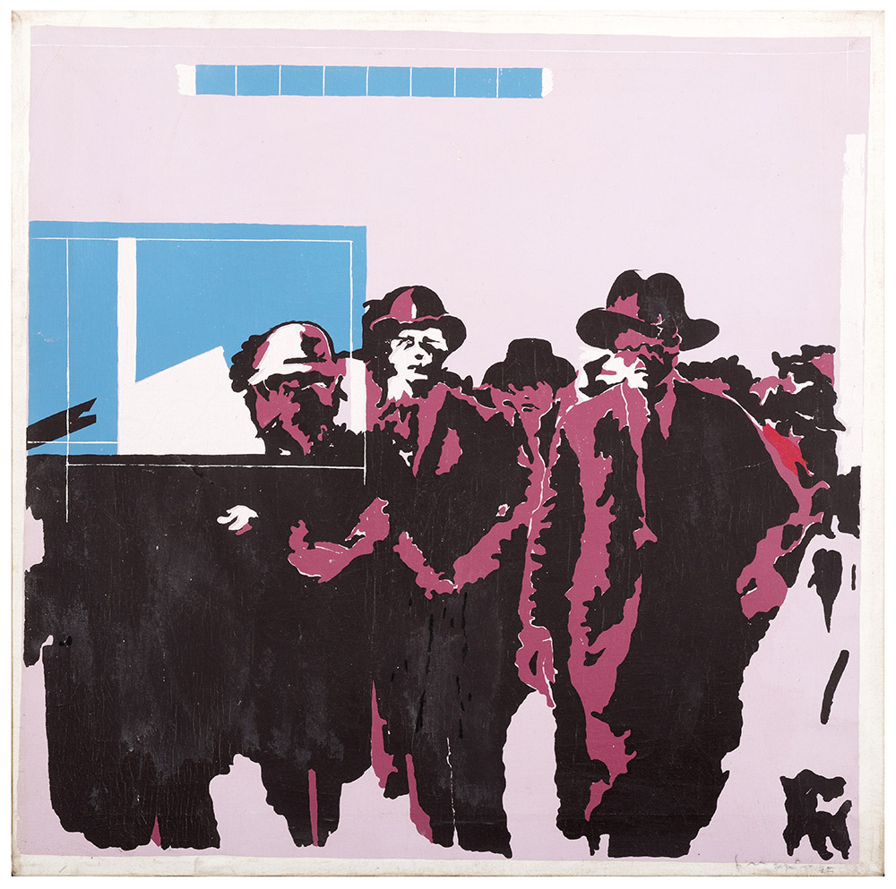 PINO REGGIANI , Forlì 1937, Serie Sacco e Vanzetti 1972, Tecnica mista ad olio e serigrafia su tela cm 60 x 60, Firma e data al retro