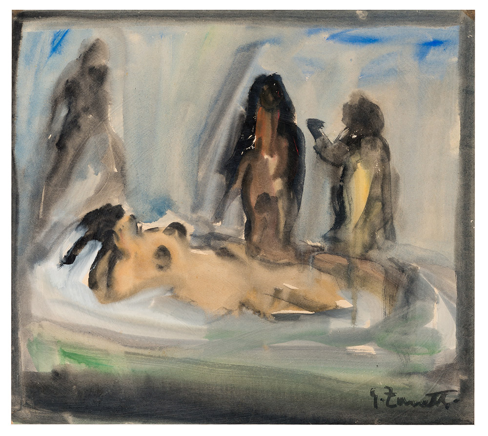 GIUSEPPE ZANETTI, 1910 - 1983, Figure, Acquerello su carta cm 40 x 43, Firma in basso a destra